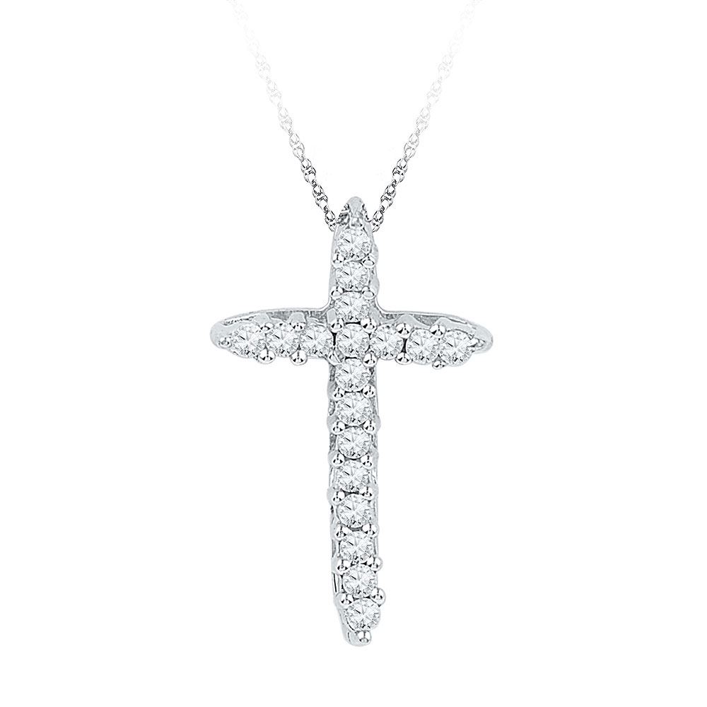 10kt White Gold Womens Round Diamond Cross Religious Pendant 1/4 Cttw