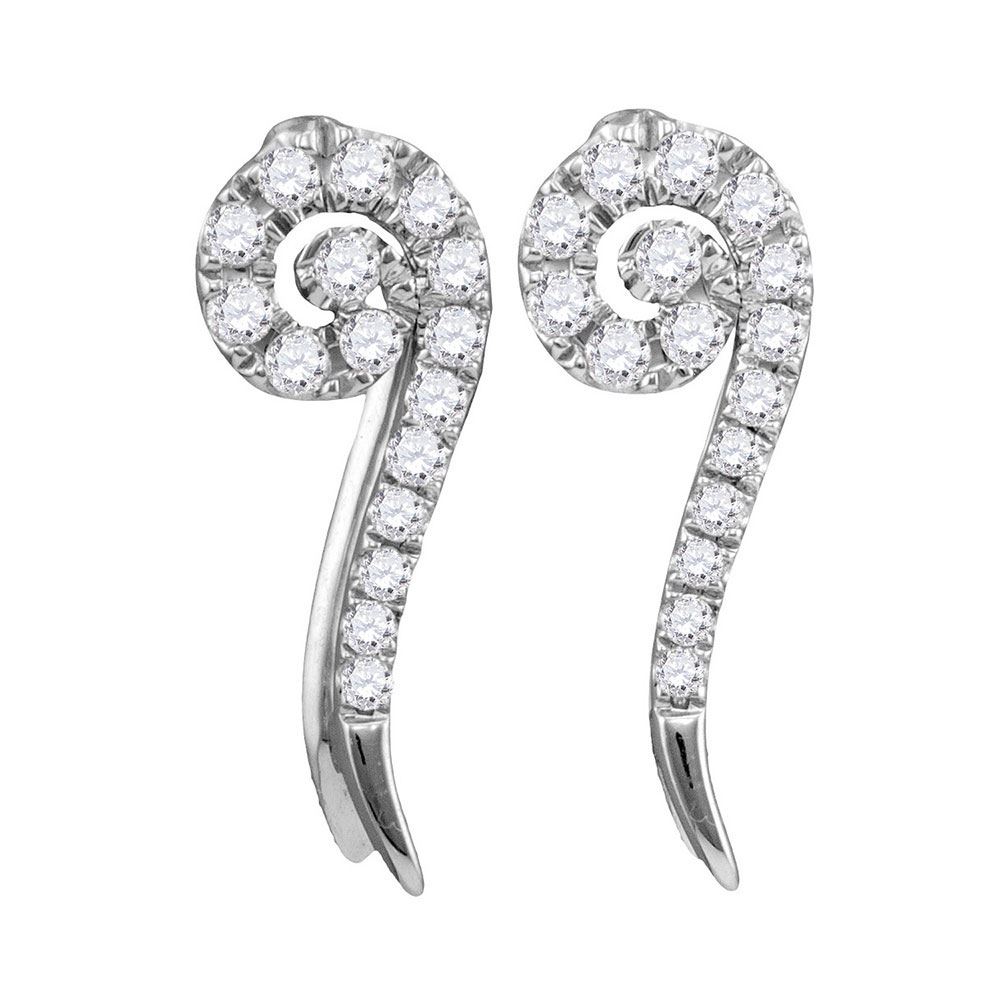 10kt White Gold Womens Round Diamond Curled Vertical Stud Earrings 1/4 Cttw