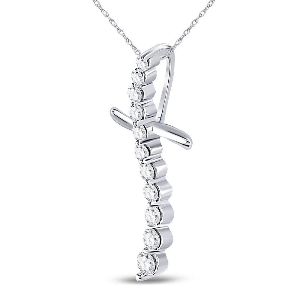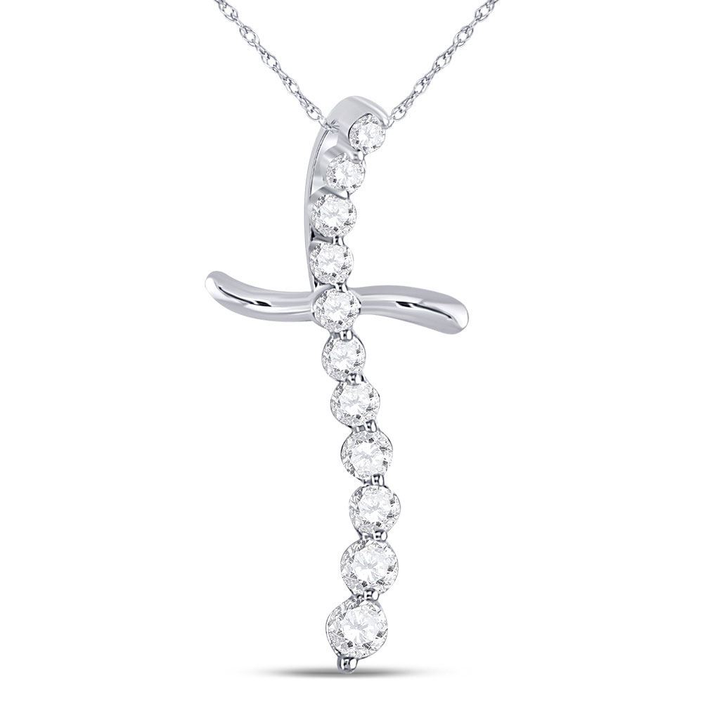 REF-15M5A ---- 1/4 CTW Round Diamond Curved Cross Faith Pendant 10kt White Gold