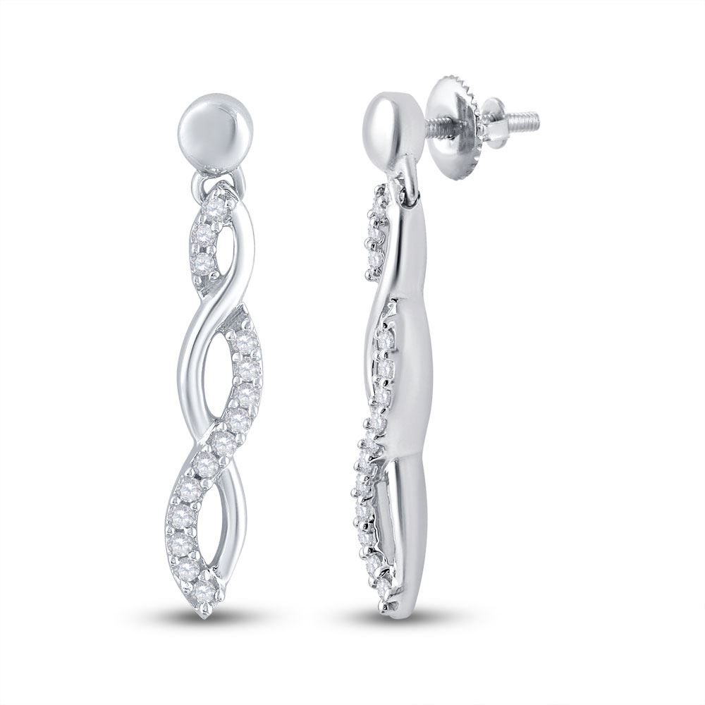10k White Gold Round Pave-set Diamond Womens Journey Dangle Screwback Stud Earrings 1/4 Cttw