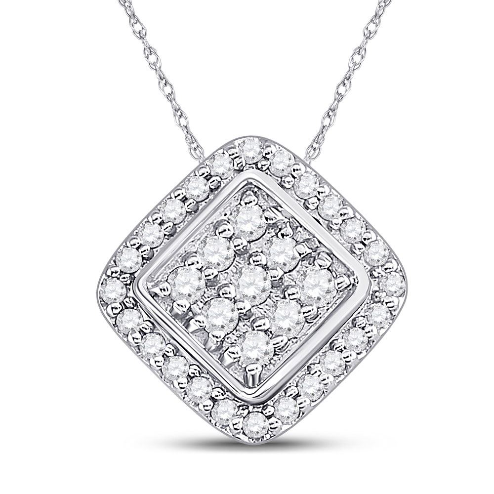 10kt White Gold Womens Round Diamond Diagonal Square Frame Cluster Pendant 1/4 Cttw
