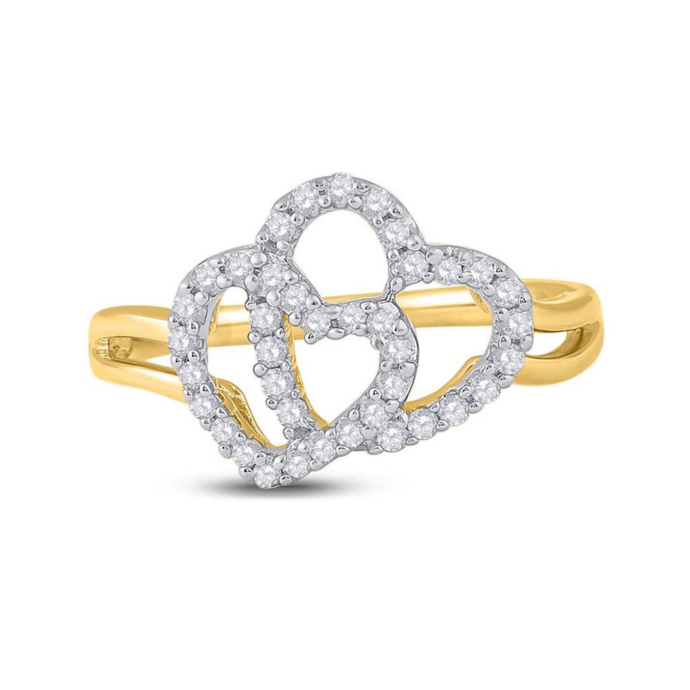 REF-33H6W ---- 1/4 CTW Round Diamond Double Heart Ring 14kt Yellow Gold