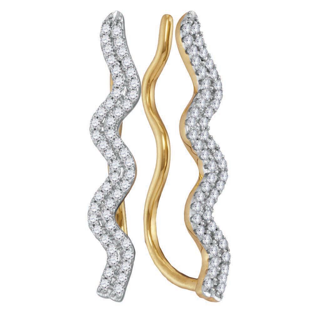 10kt Yellow Gold Womens Round Diamond Double Two Row Climber Earrings 1/4 Cttw
