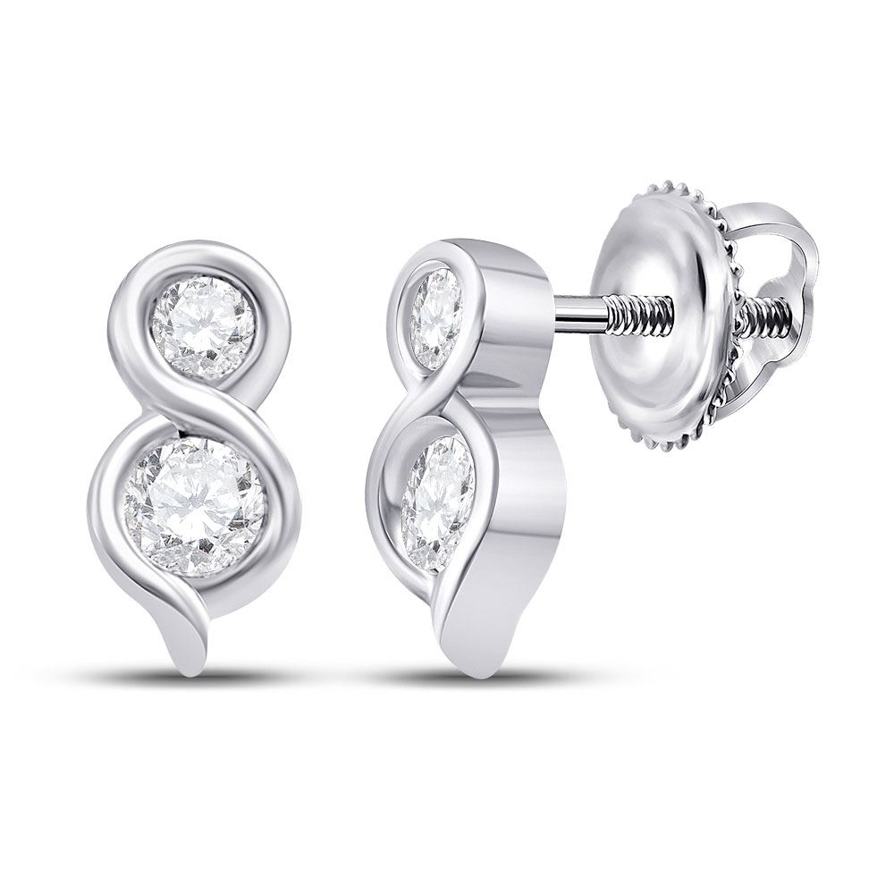 14kt White Gold Womens Round Diamond Drop 2-stone Earrings 1/4 Cttw