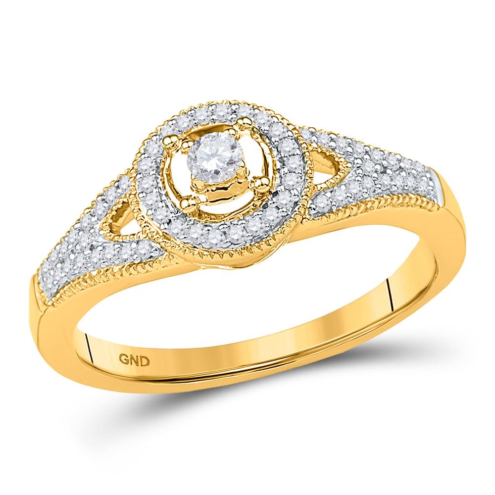 10kt Yellow Gold Womens Round Diamond Encircled Solitaire Milgrain Promise Bridal Ring 1/4 Cttw