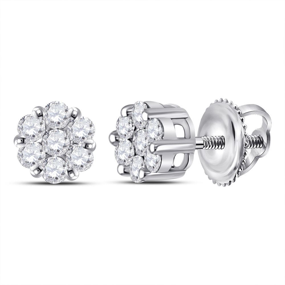 14kt White Gold Womens Round Diamond Flower Cluster Earrings 1/4 Cttw