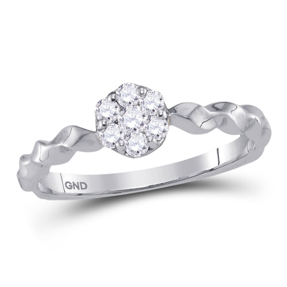 REF-20W9F ---- 1/4 CTW Round Diamond Flower Cluster Stackable Ring 10kt White Gold