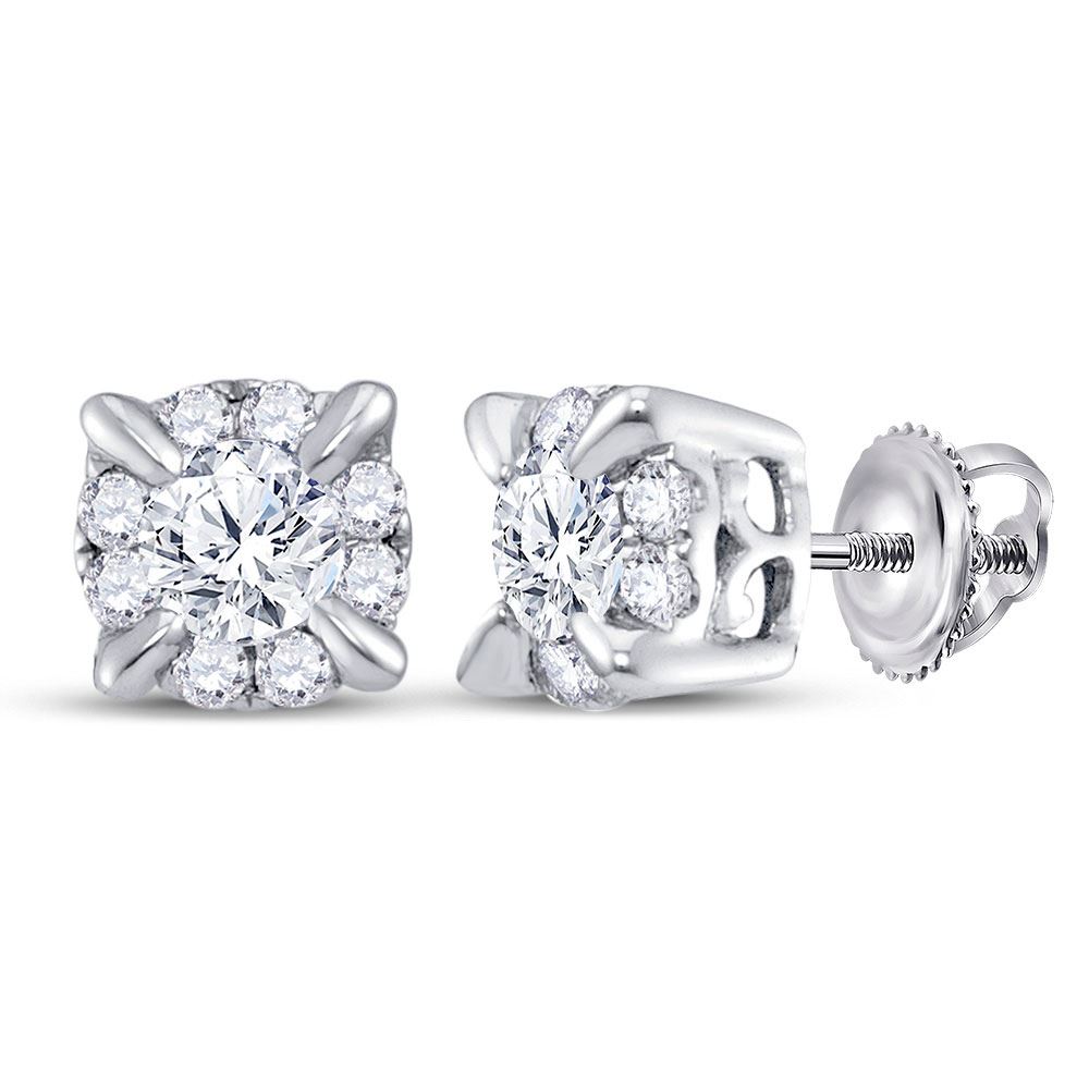 14kt White Gold Womens Round Diamond Halo Solitaire Earrings 1/4 Cttw