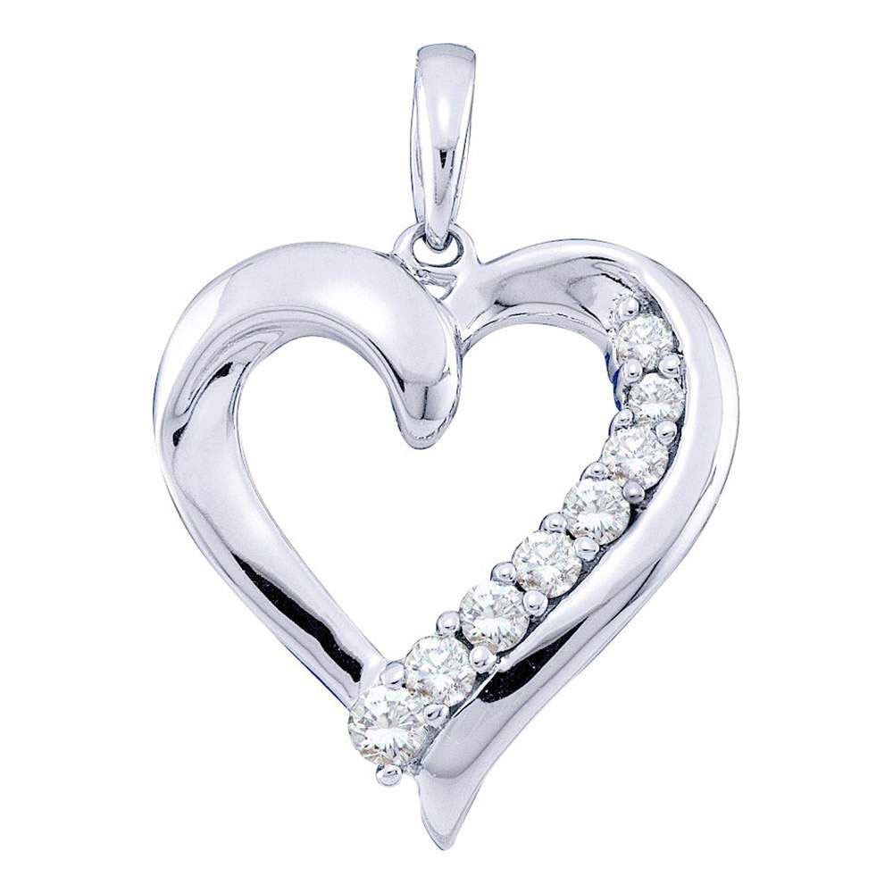 10kt White Gold Womens Round Diamond Heart Pendant 1/4 Cttw