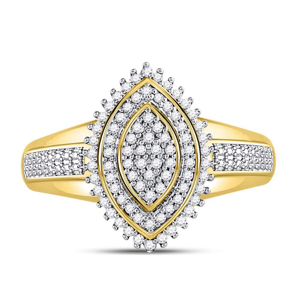 10kt Yellow Gold Womens Round Diamond Marquise-shape Cluster Ring 1/4 Cttw