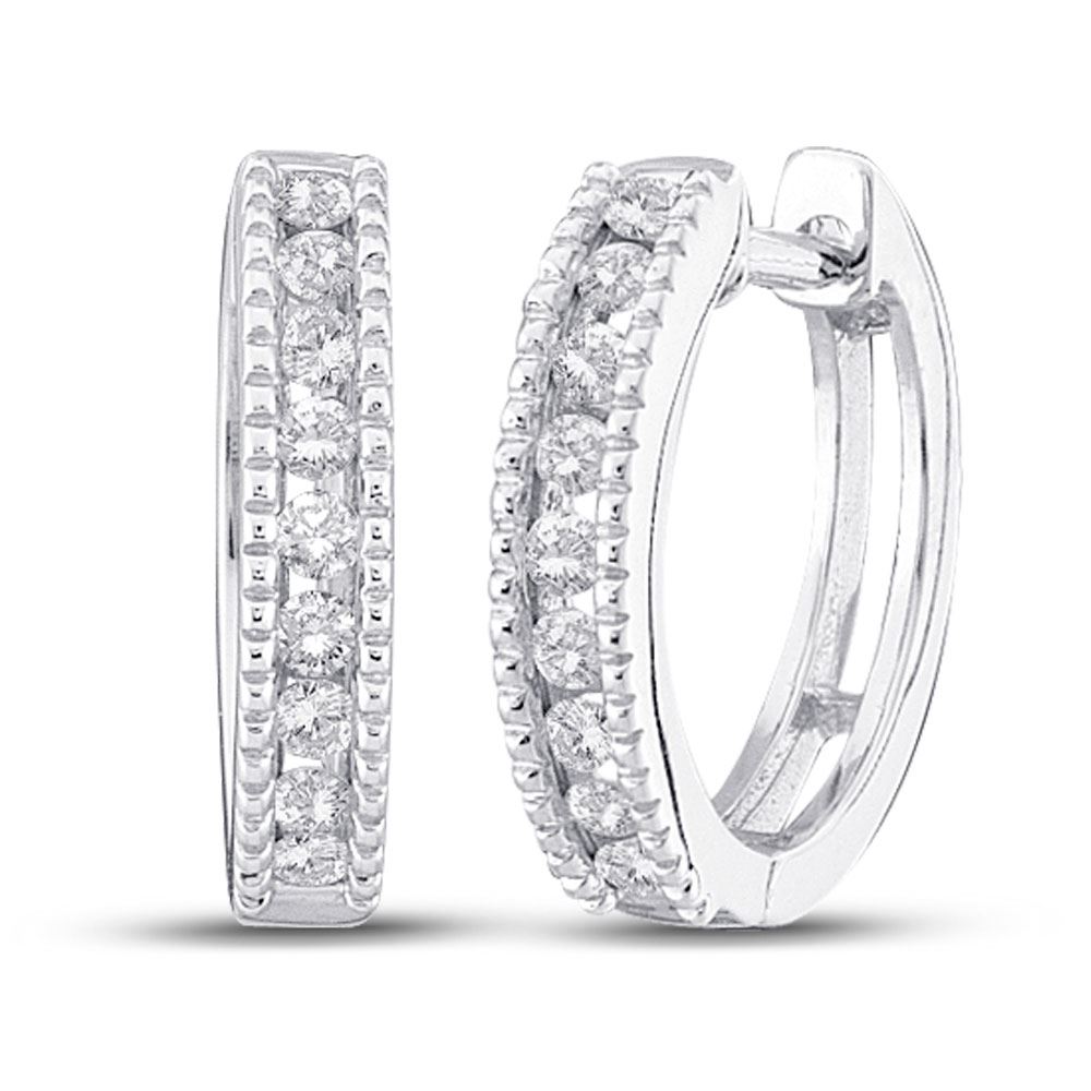 REF-21K5R ---- 1/4 CTW Round Diamond Milgrain Hoop Earrings 10kt White Gold
