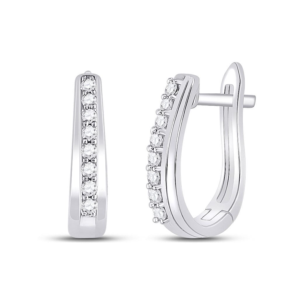 10kt White Gold Womens Round Diamond Oblong Hoop Earrings 1/4 Cttw