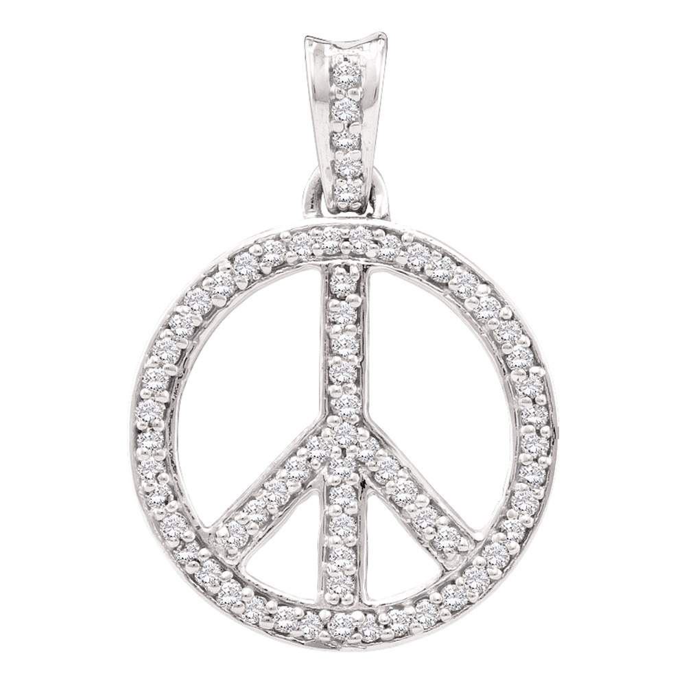10kt White Gold Womens Round Diamond Peace Sign Circle Pendant 1/4 Cttw