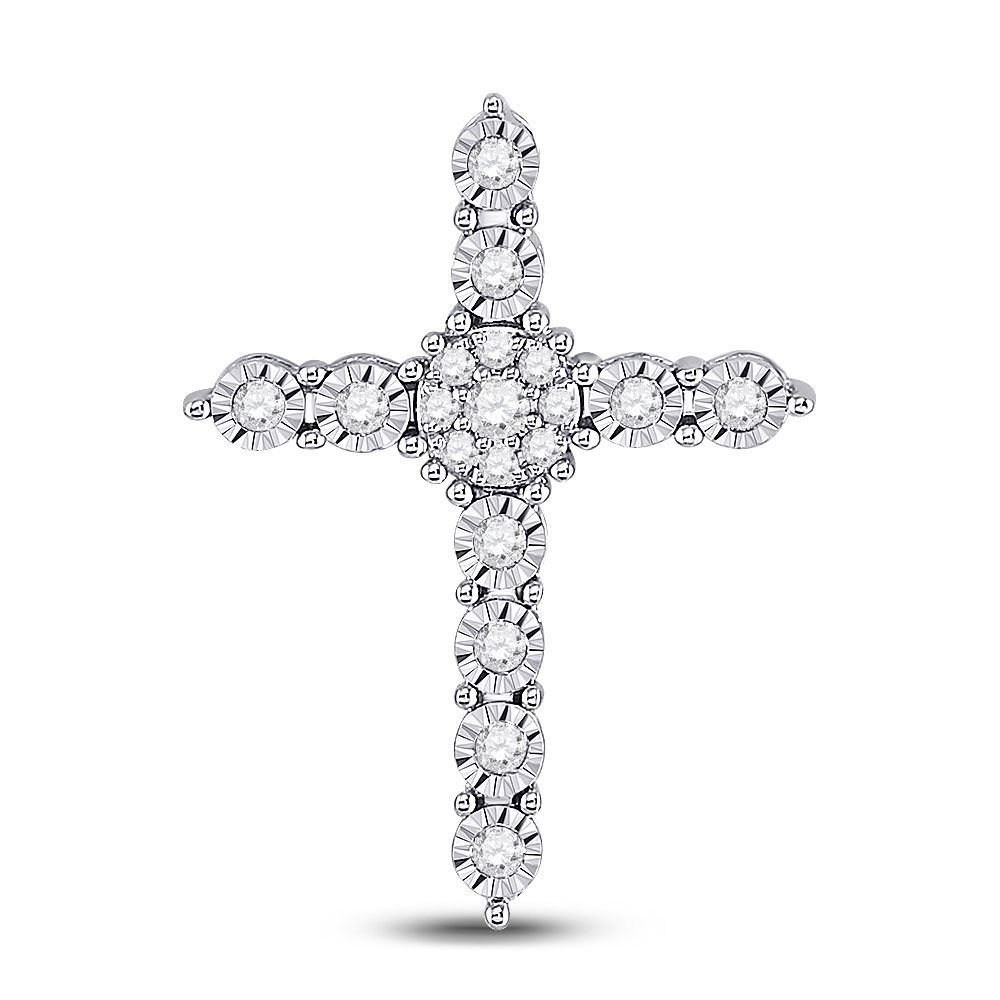 14kt White Gold Womens Round Diamond Religious Cross Pendant 1/4 Cttw
