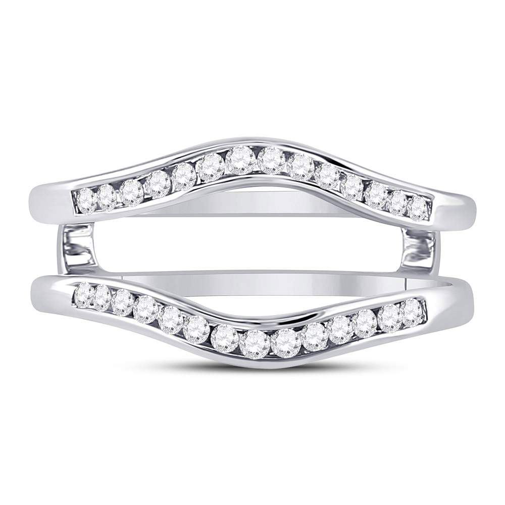14kt White Gold Womens Round Diamond Ring Guard Wrap Solitaire Enhancer 1/4 Cttw