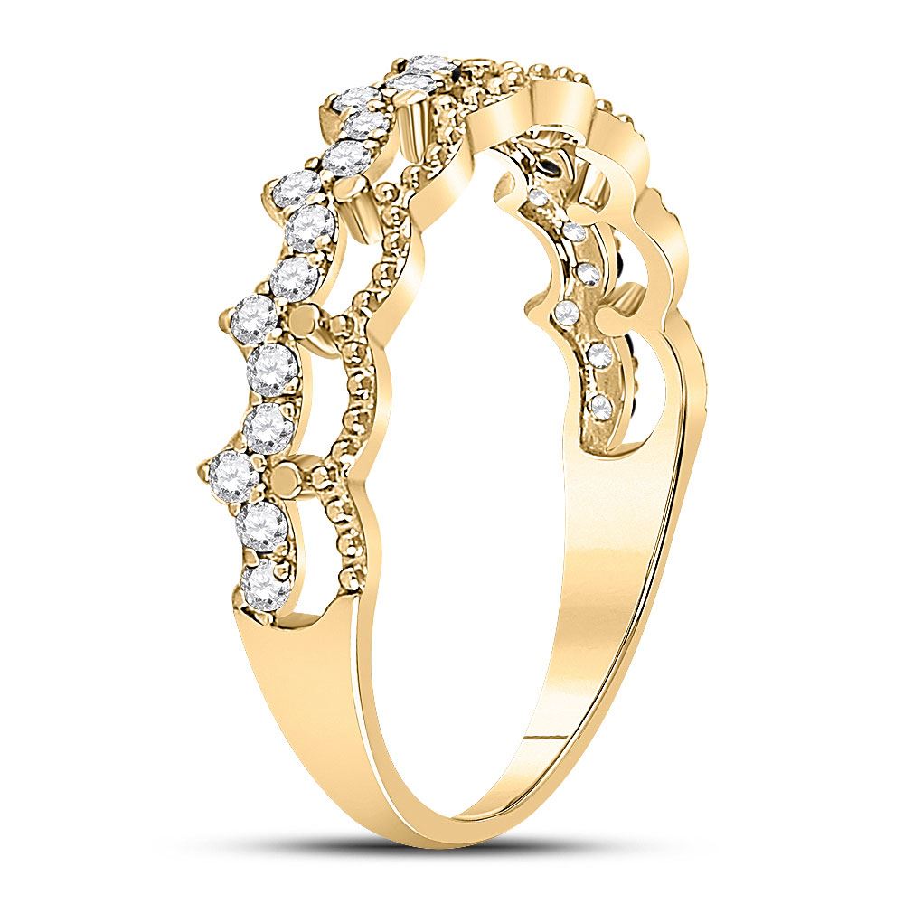 10kt Yellow Gold Womens Round Diamond Scalloped Stackable Band Ring 1/4 Cttw