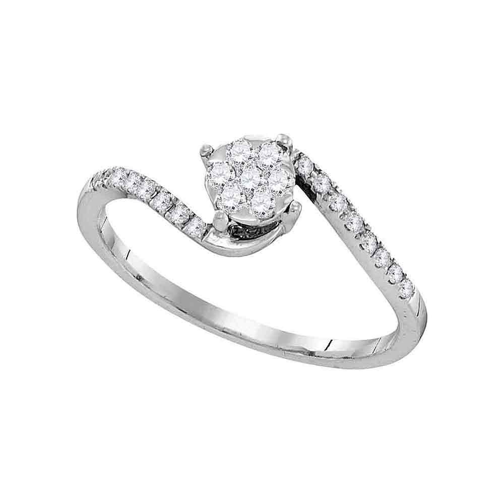 10kt White Gold Womens Round Diamond Slender Swirl Cluster Ring 1/4 Cttw