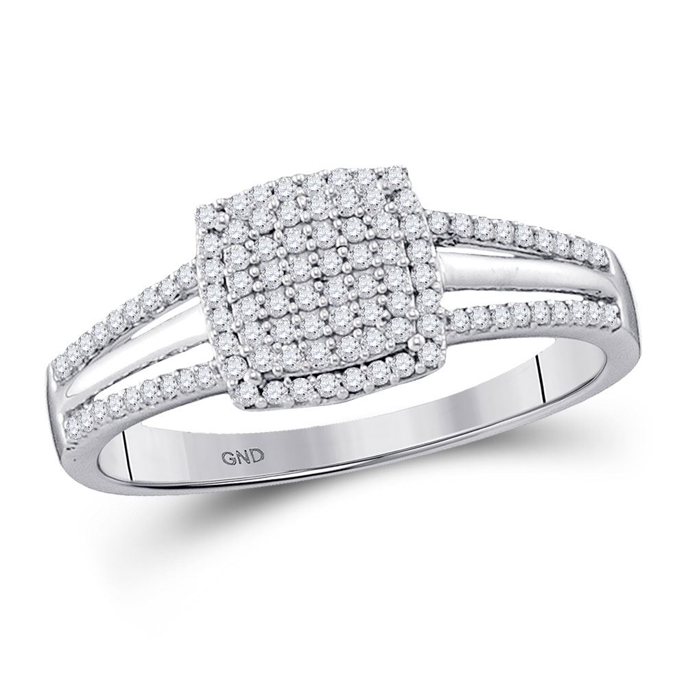 REF-18W3F ---- 1/4 CTW Round Diamond Square Cluster Bridal Wedding Engagement Ring 10kt White Gold