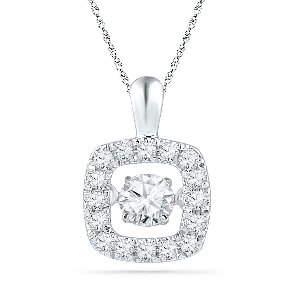 10kt White Gold Womens Round Diamond Square Moving Twinkle Pendant 1/4 Cttw