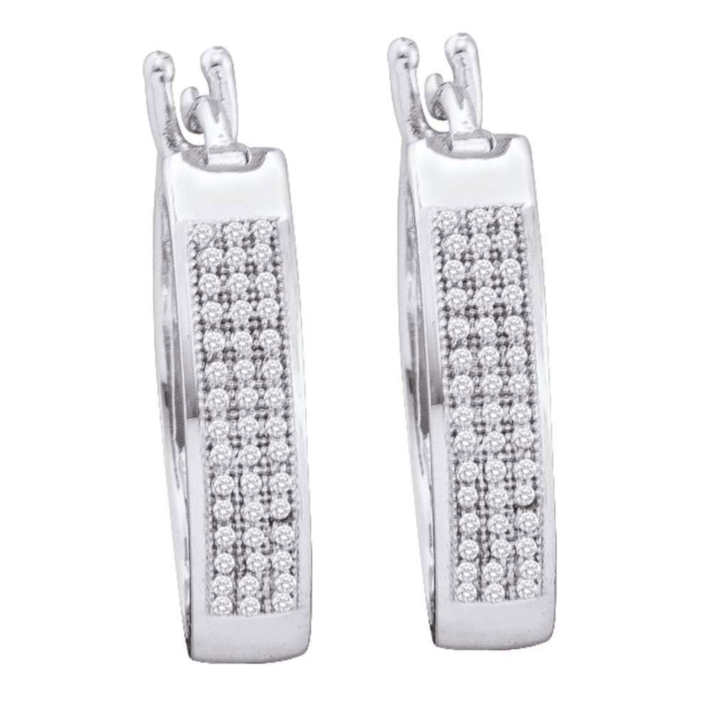 10kt White Gold Womens Round Diamond Triple Row Hoop Earrings 1/4 Cttw