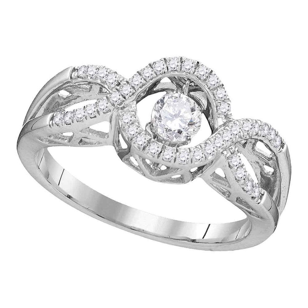 10kt White Gold Womens Round Diamond Twinkle Moving Solitaire Ring 1/4 Cttw