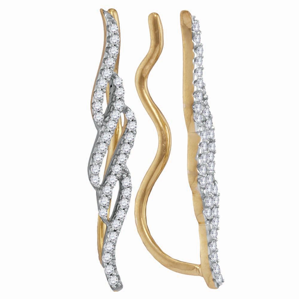 REF-18N3Y ---- 1/4 CTW Round Diamond Vertical Twist Climber Earrings 10kt Yellow Gold