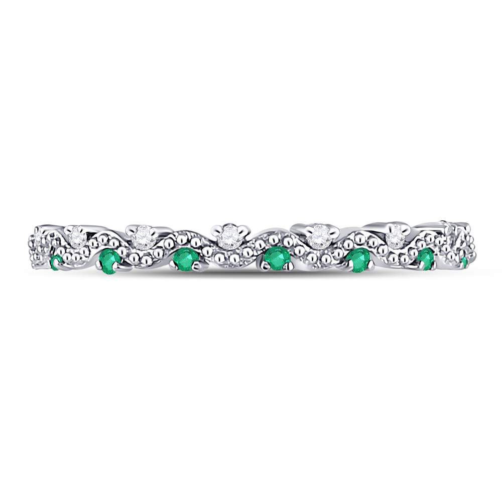 10kt White Gold Womens Round Emerald Diamond Eternity Stackable Band Ring 1/4 Cttw