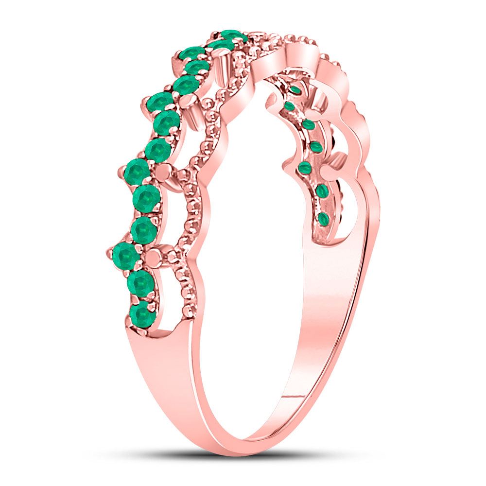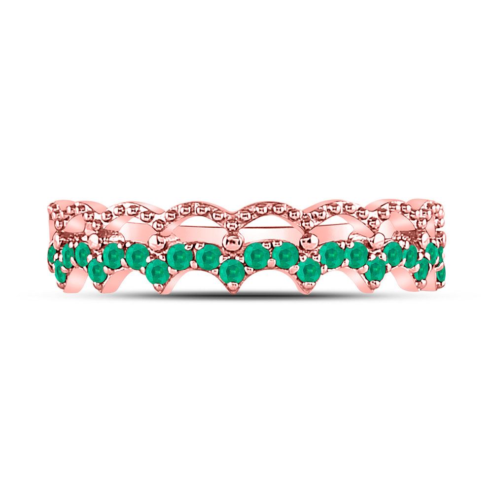 10kt Rose Gold Womens Round Emerald Scalloped Stackable Band Ring 1/4 Cttw