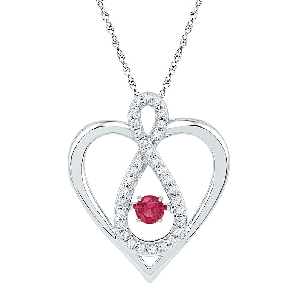 10kt White Gold Womens Round Lab-Created Ruby Diamond Infinity Heart Pendant 1/4 Cttw