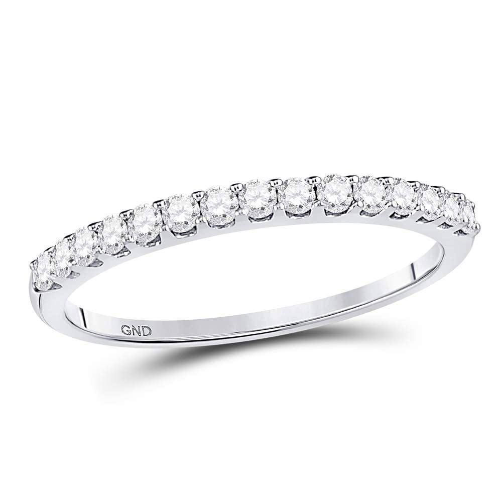 14kt White Gold Womens Round Pave-set Diamond Single Row Wedding Band 1/4 Cttw