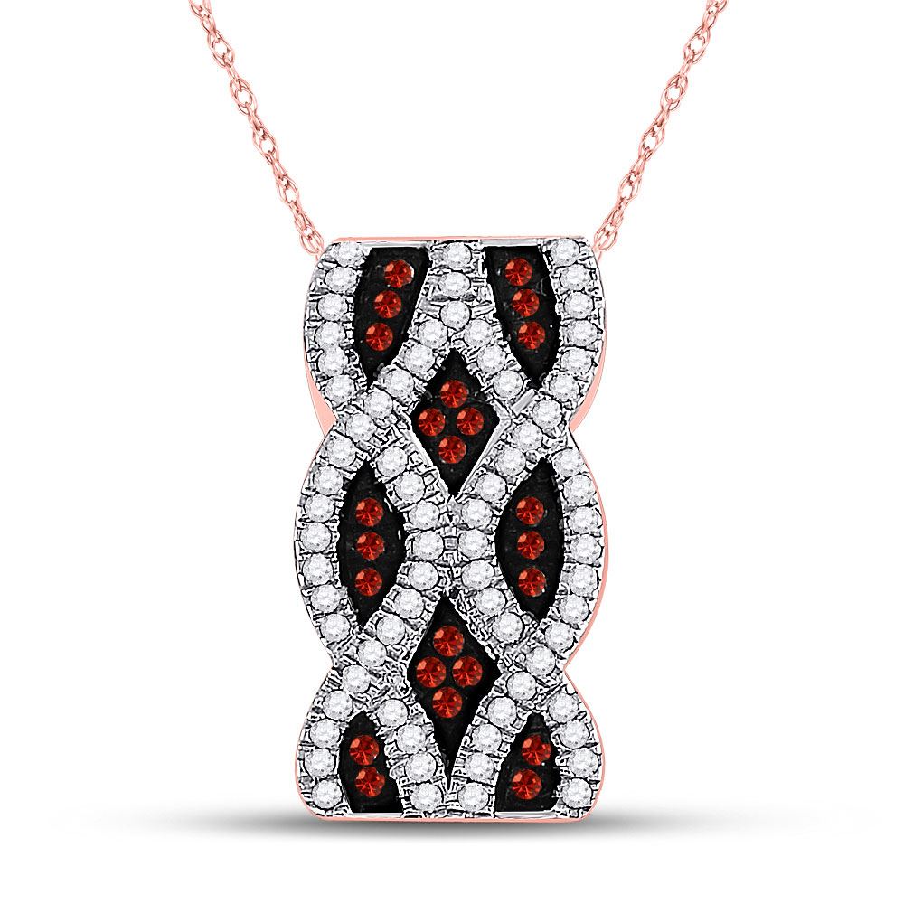 REF-24X3T ---- 1/4 CTW Round Red Color Enhanced Diamond Fashion Pendant 10kt Rose Gold