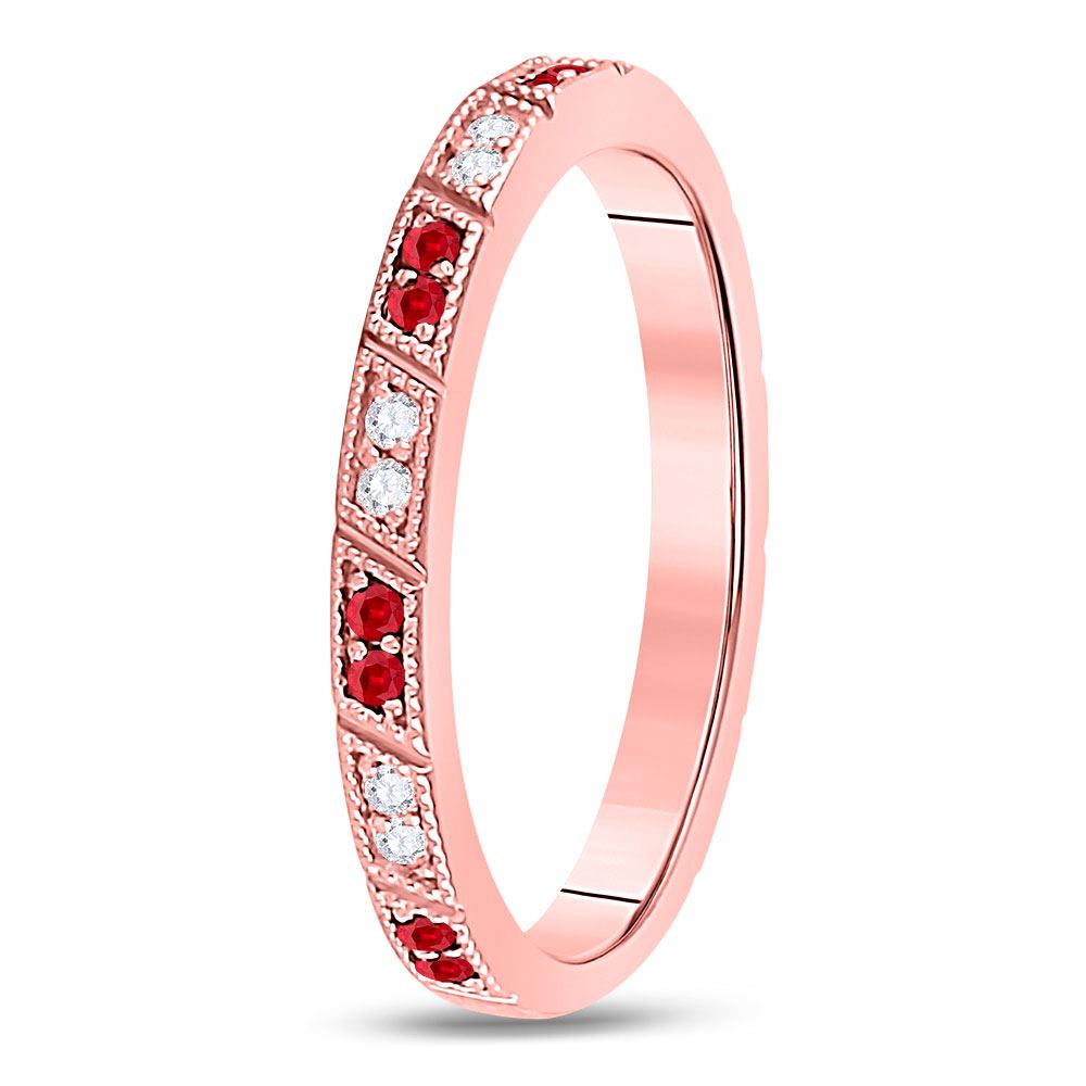 10kt Rose Gold Womens Round Ruby Diamond Milgrain Stackable Band Ring 1/4 Cttw