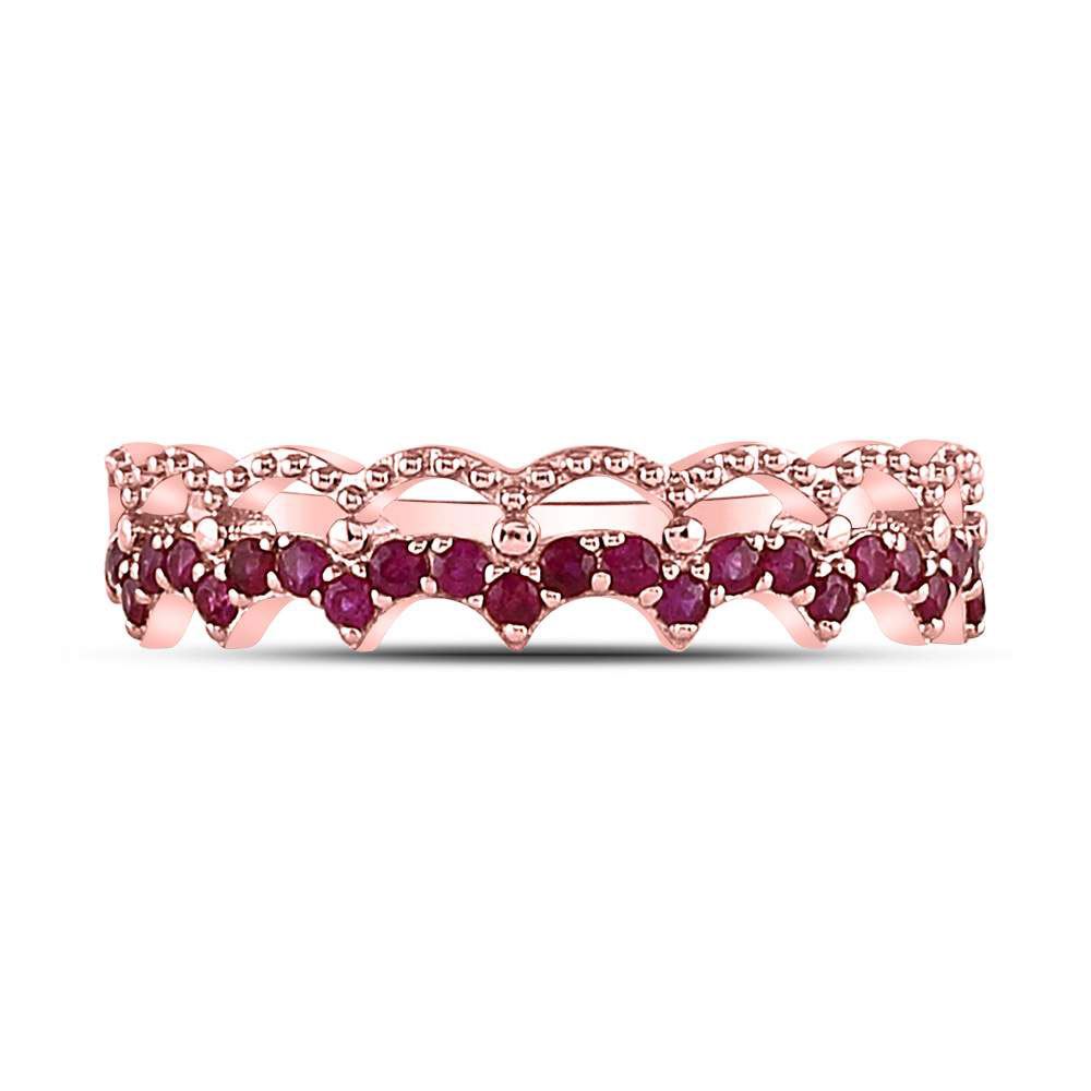 10kt Rose Gold Womens Round Ruby Scalloped Stackable Band Ring 1/4 Cttw