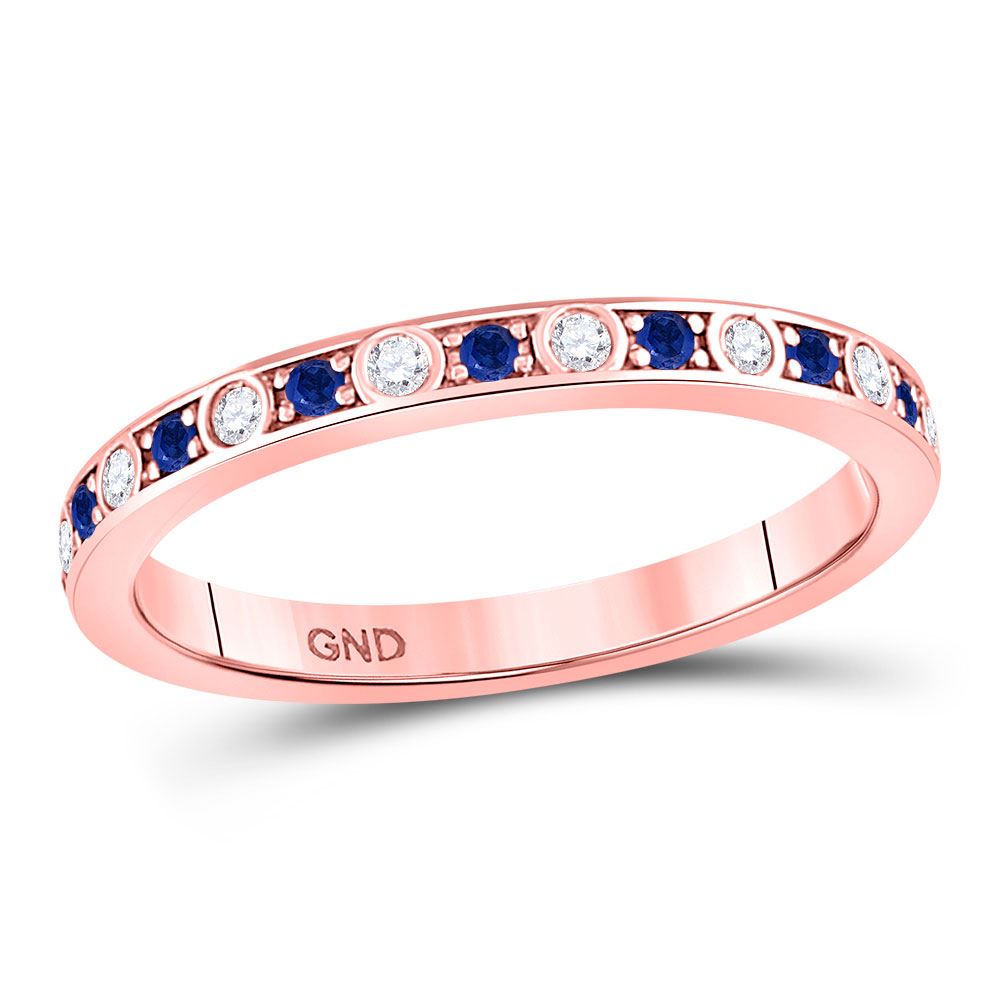 REF-24T5V - 1/4 CTW Womens Round Blue Sapphire Diamond Alternating Stackable Band Ring 10kt Rose Gold - REF-24T5V