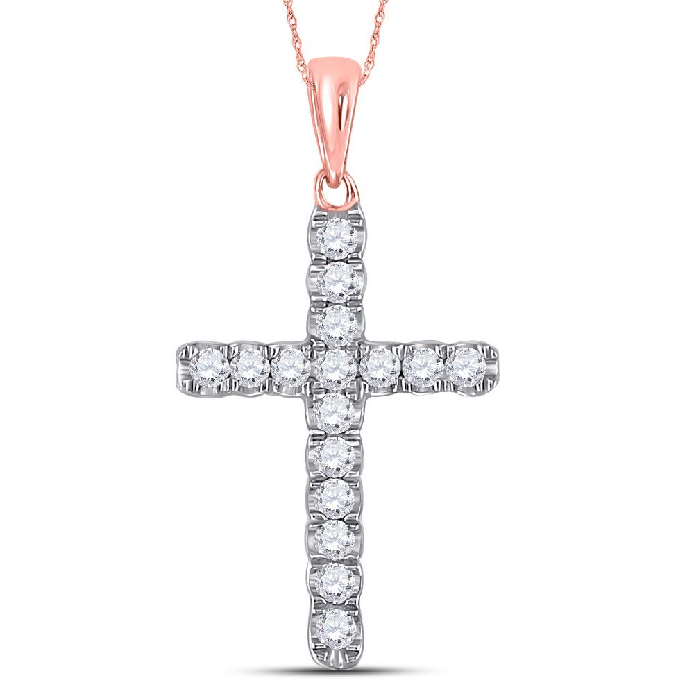 REF-17M3F - 1/4 CTW Womens Round Diamond Cross Pendant 10kt Rose Gold - REF-17M3F