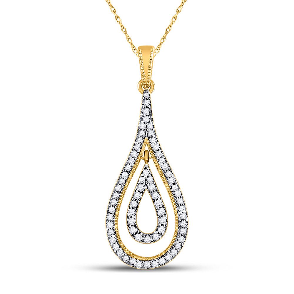 REF-21A8M - 1/4 CTW Womens Round Diamond Double Nested Teardrop Pendant 10kt Yellow Gold - REF-21A8M