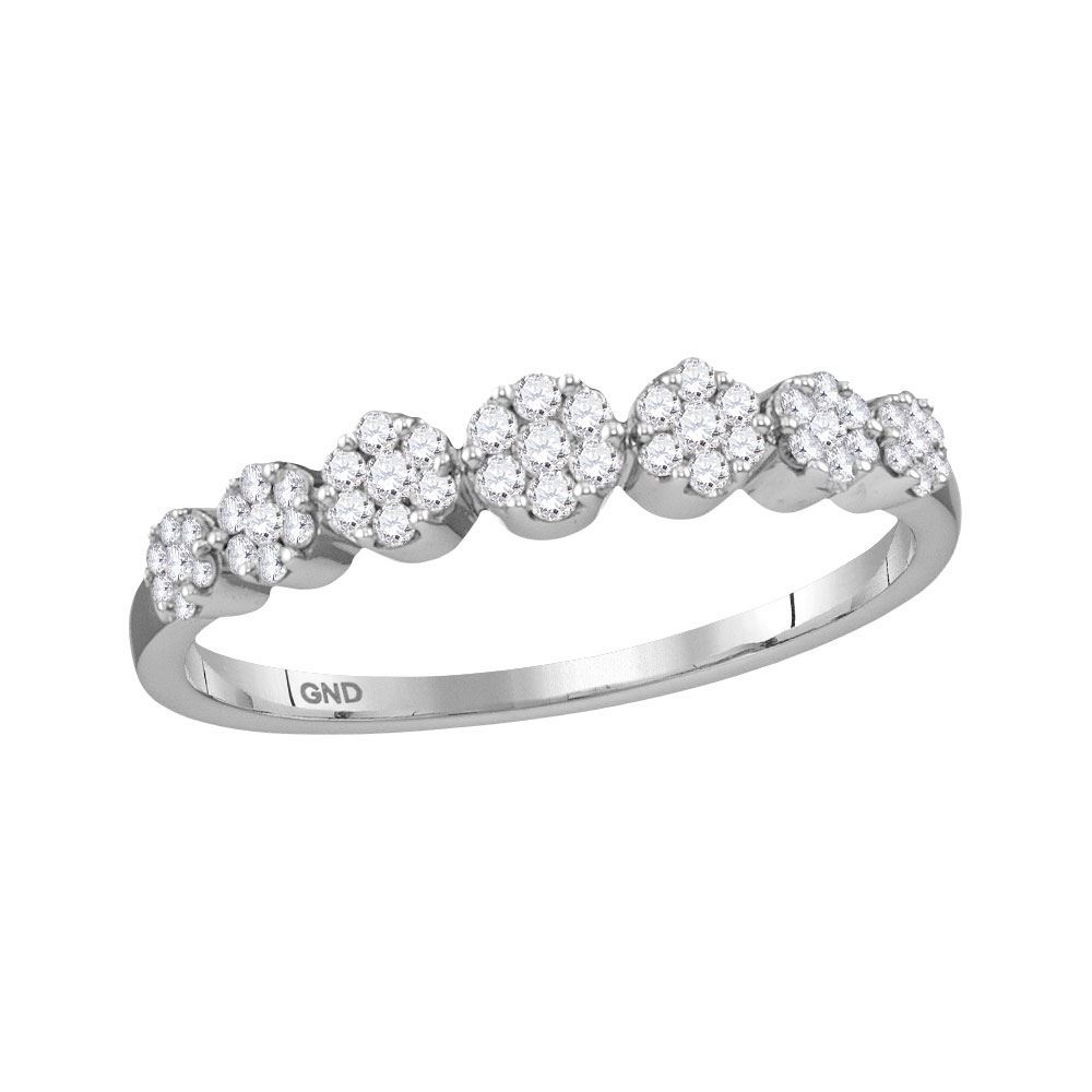 REF-25H9R - 1/4 CTW Womens Round Diamond Flower Cluster Ring 10kt White Gold - REF-25H9R