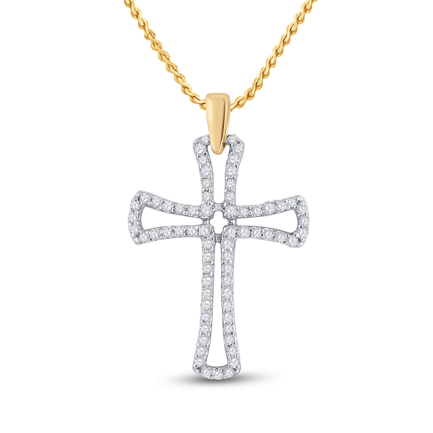 REF-17A6M - 1/4 CTW Womens Round Diamond Gothic Cross Pendant 10kt Yellow Gold - REF-17A6M