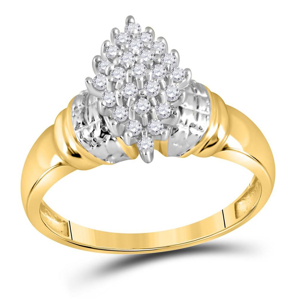 REF-24Y7N - 1/4 CTW Womens Round Diamond Oval Cluster Ring 10kt Yellow Gold - REF-24Y7N