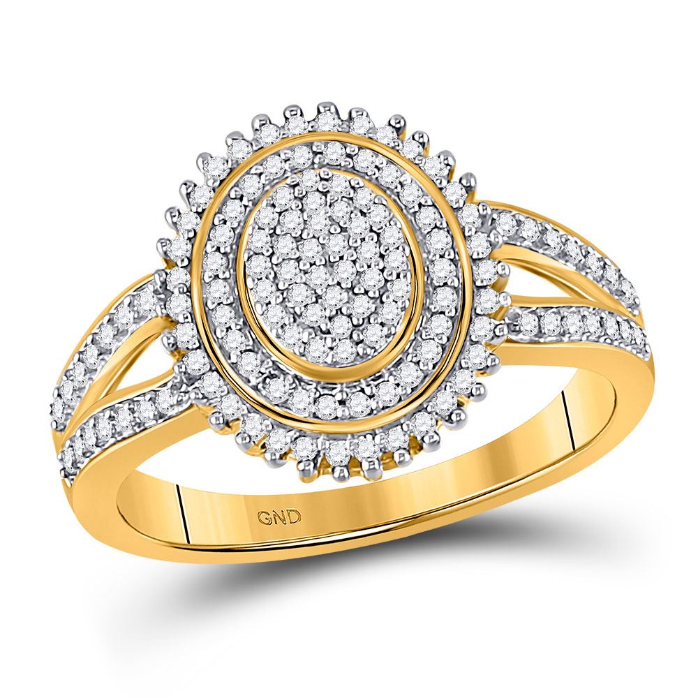 REF-30R7X - 1/4 CTW Womens Round Diamond Oval Cluster Ring 10kt Yellow Gold - REF-30R7X