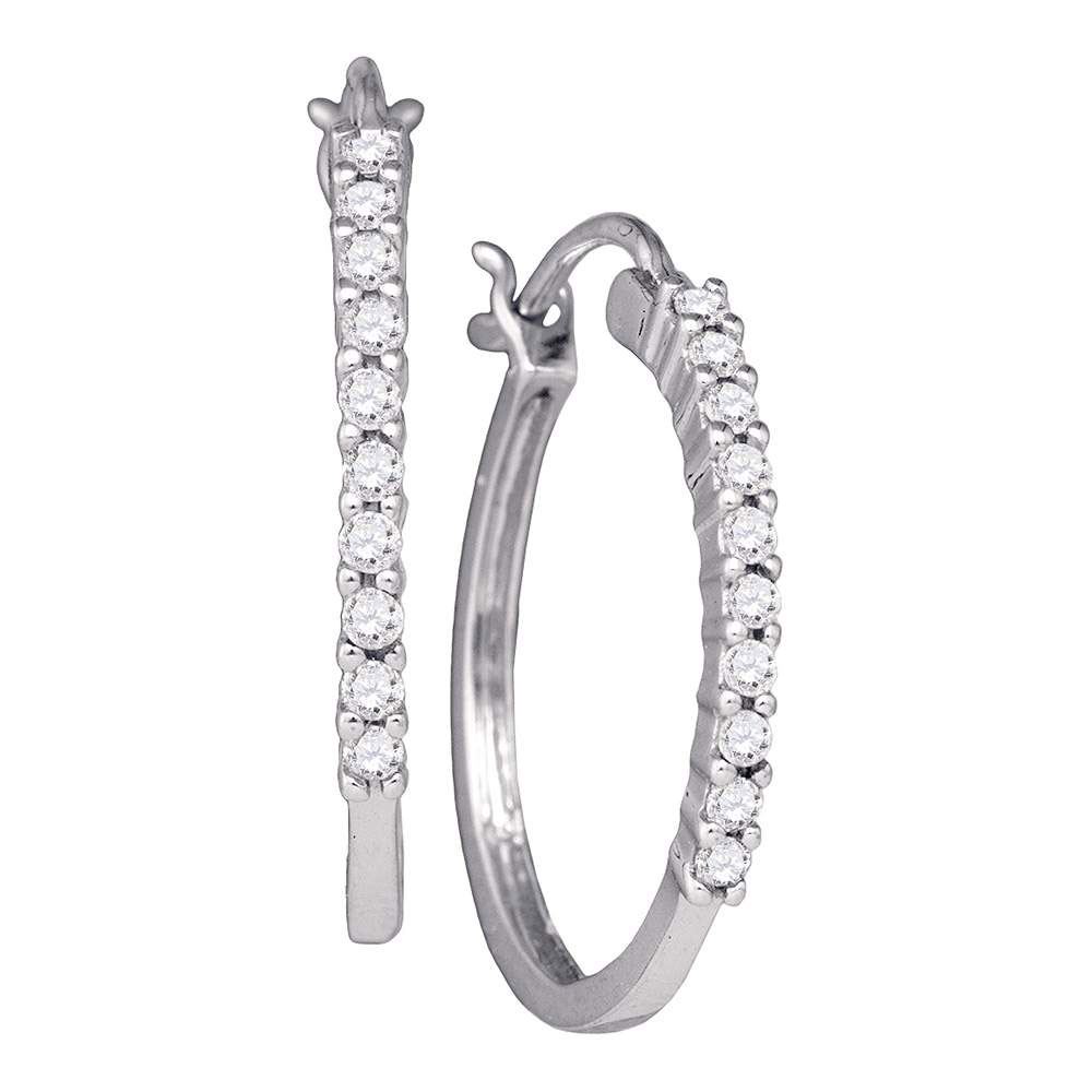 REF-27X3T - 1/4 CTW Womens Round Diamond Slender Snap-down Hoop Earrings 14kt White Gold - REF-27X3T