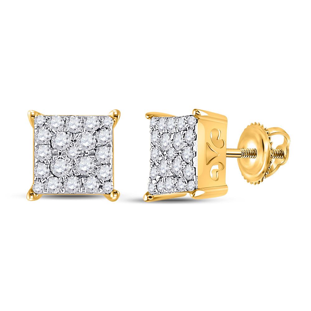 REF-22A5M - 1/4 CTW Womens Round Diamond Square Cluster Earrings 10kt Yellow Gold - REF-22A5M