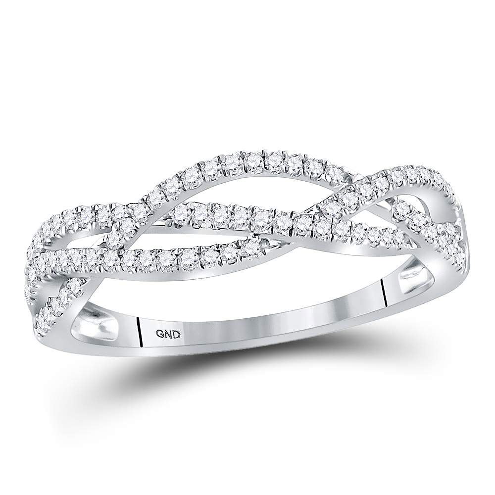 REF-27N3A - 1/4 CTW Womens Round Diamond Woven Strand Band Ring 10kt White Gold - REF-27N3A