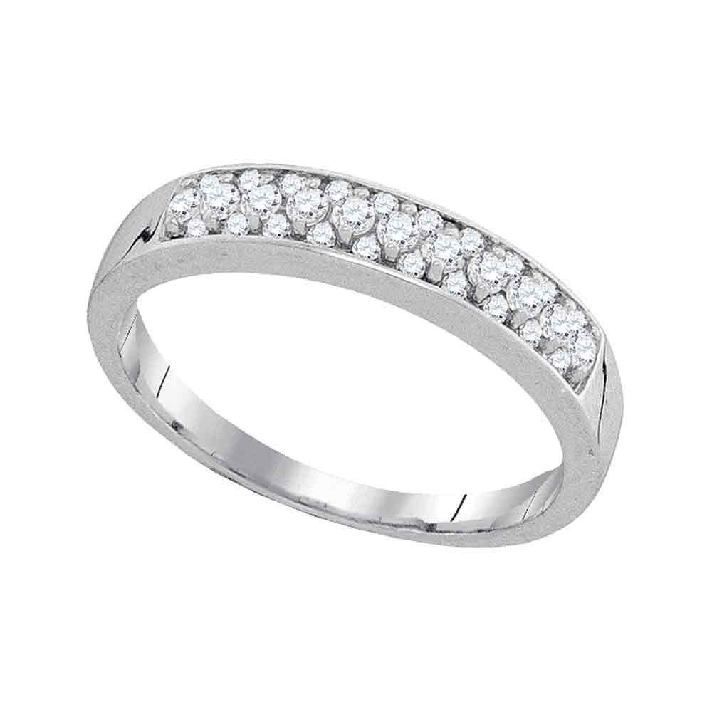 REF-27M3F - 1/4 CTW Womens Round Pave-set Diamond Single Row Wedding Band Ring 10kt White Gold - REF-27M3F