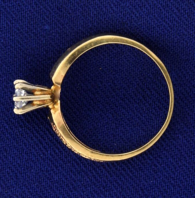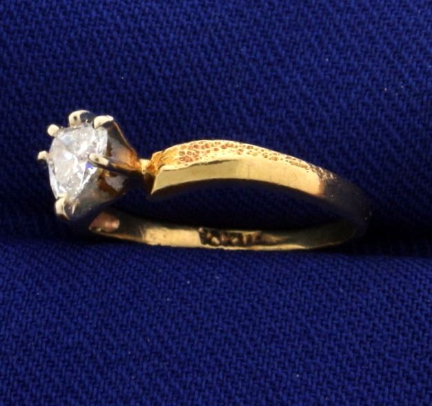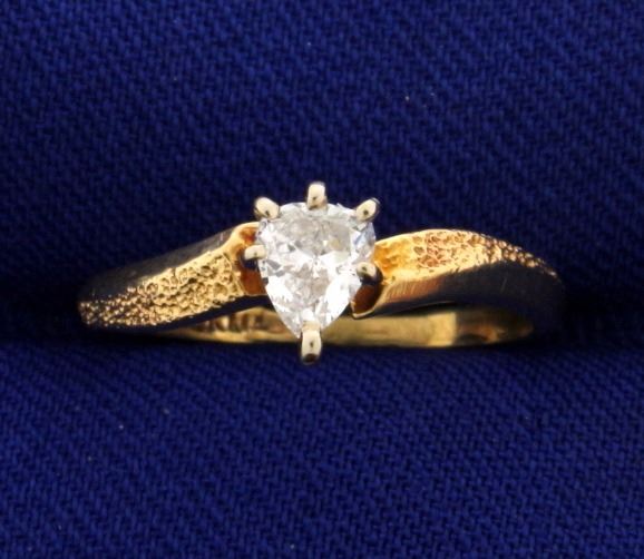 In 10k Yellow gold. Contains a high quality pear shaped diamond weighs 0.25cts, SI clarity/H color. Size 4. 1.6g