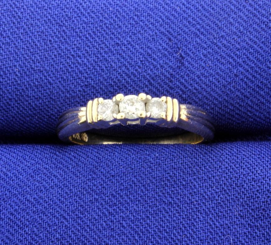 In 10K yellow & white gold, it contains one .1ct & two .07ct diamonds-I clarity, I color. Size 7 2.7g
