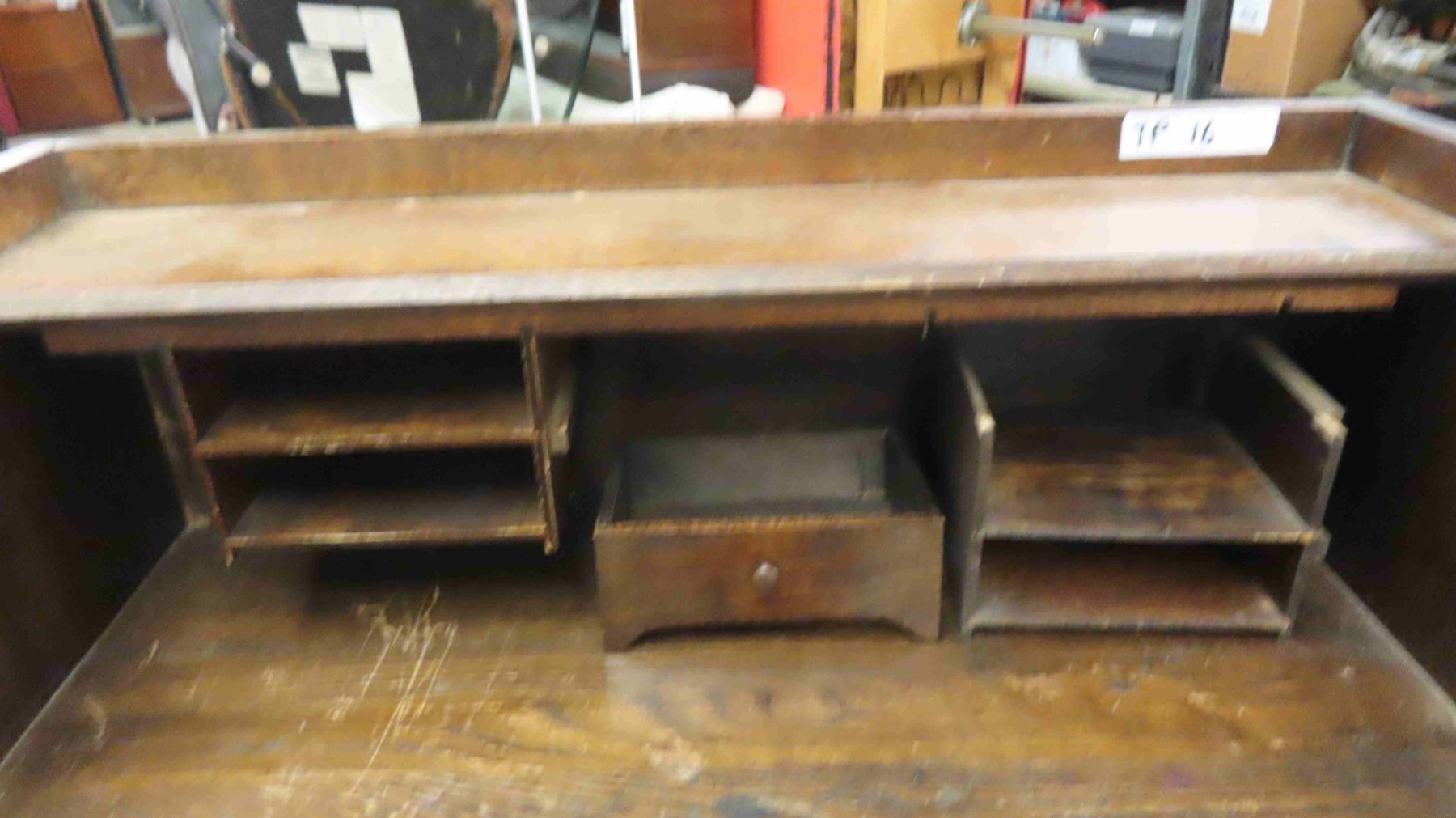 1/4 Cut Oak Drop Front Security Desk 15" x 31" x 41"