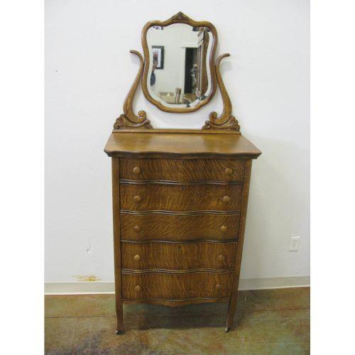 1/4 Cut oak, Serpentine Highboy Chest w/beveled mirror