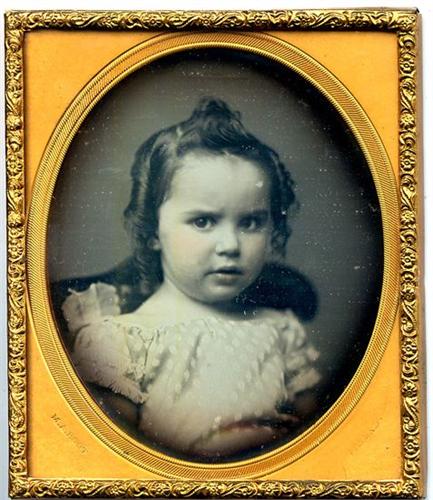 Hope you can see the special character of this 1/6 plate daguerreotype in an oval mat by M. A. Root, Philadelphia. Actually "character" is the essential thing here-- this child's portrait reveals a complex personality as well as rich sculptural presentation, the result of Root's mastery. In full case with repaired spine, still sealed. [4]