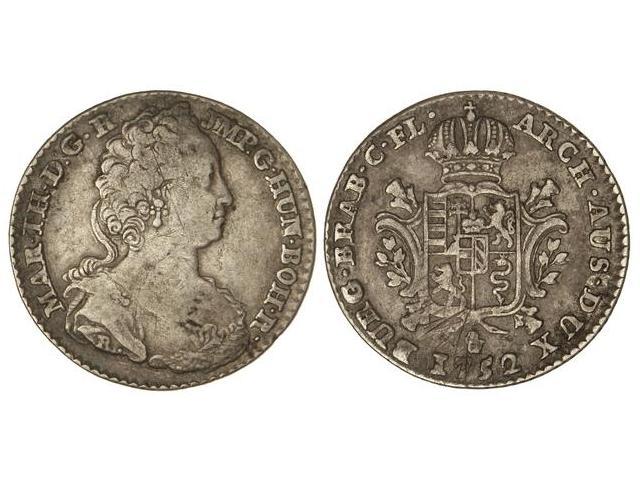 1/4 Ducatón. 1752-R. Mª TERESA. PAÍSES BAJOS AUSTRÍACOS. AR. (Rayitas). KM-6. MBC-.